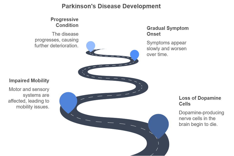 The loss of dopamine-producing nerve cells in the brain is the main cause of Parkinson’s disease, a progressive ,degenerative neurological condition that impairs mobility. Both motor and sensory systems are impacted, and symptoms usually appear gradually and get worse with time.